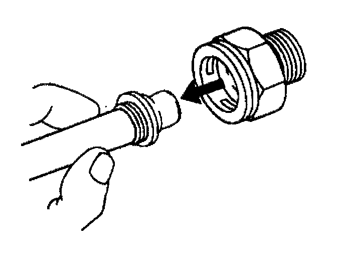 12. Position the plastic cap onto the fitting. Do not manually depress the retaining ring when installing the plastic cap onto the quick connect fitting.