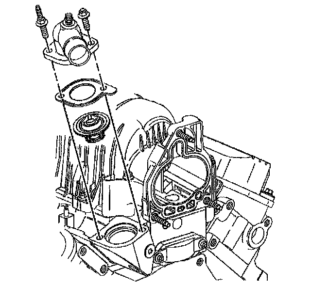 2. Install the gasket and the water outlet housing.