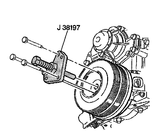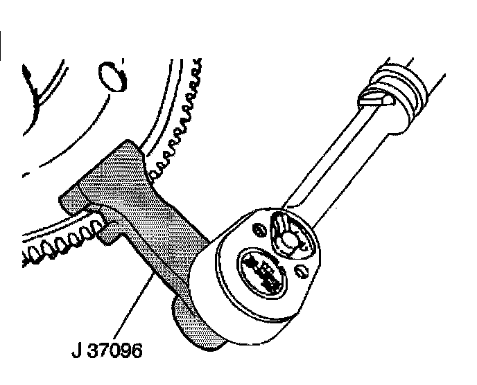 3. Use the J 37096 to secure the flywheel in order to prevent the crankshaft from rotating.