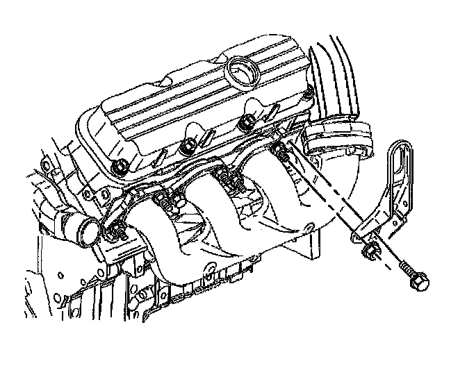 4. Remove the left engine lift bracket from the exhaust manifold.