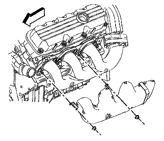 Exhaust Manifold Removal - Left1. Remove the exhaust manifold heat shield nuts.