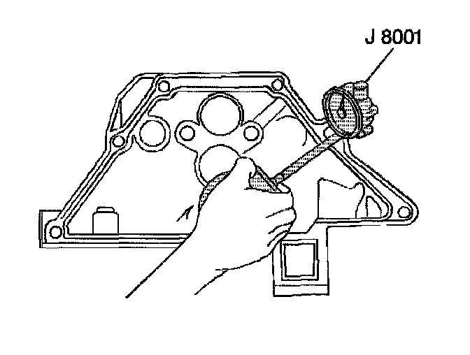 11.3. Place J 8001 on the transmission mounting bolt hole boss. Set the indicator to 0.