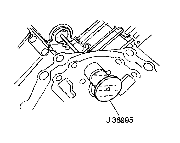 Important: The J 36995 installs the balance shaft bushing to the correct depth. The balance shaft bushing is properly installed when J 36995 fully contacts the balance shaft bore or the engine block/transaxle mounting flange.
