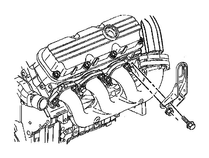 7. Install the engine lift bracket bolt and the nut.