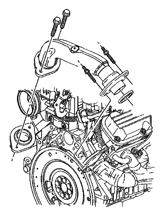 8. Remove the Exhaust Gas Recirculation (EGR) valve inlet adapter pipe bolt from the right exhaust manifold.