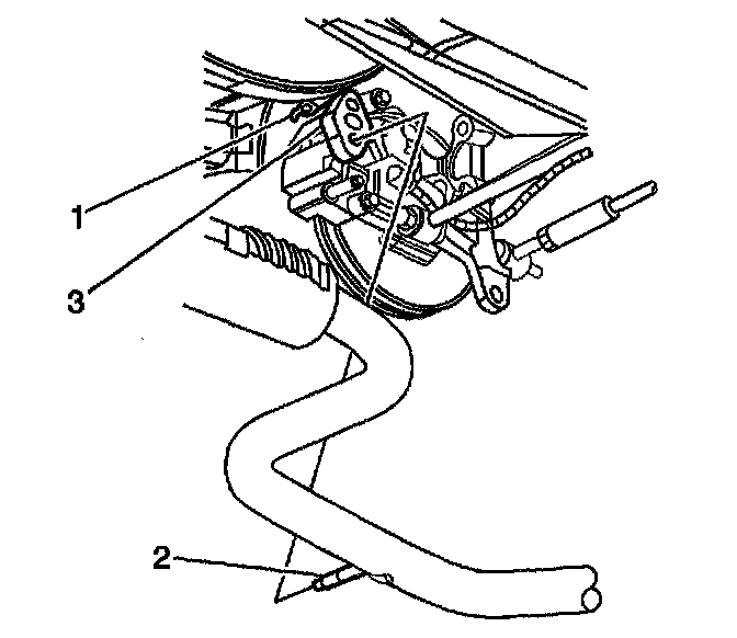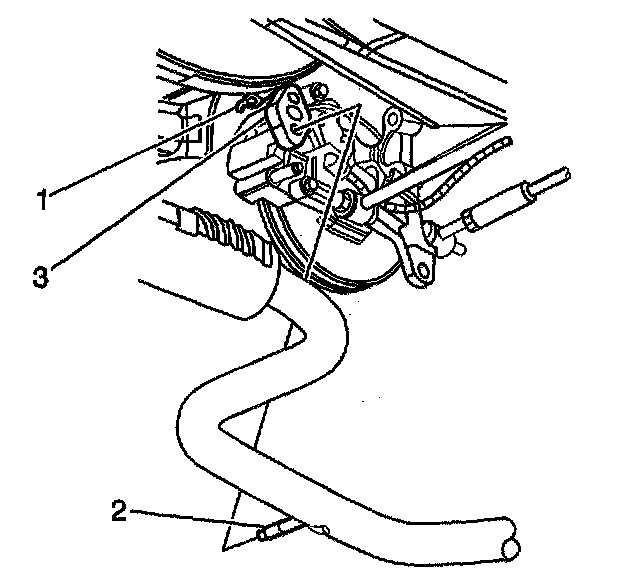 3. Remove the exhaust pipe hanger (3) from the exhaust pipe (2) and the exhaust hanger bracket (1).