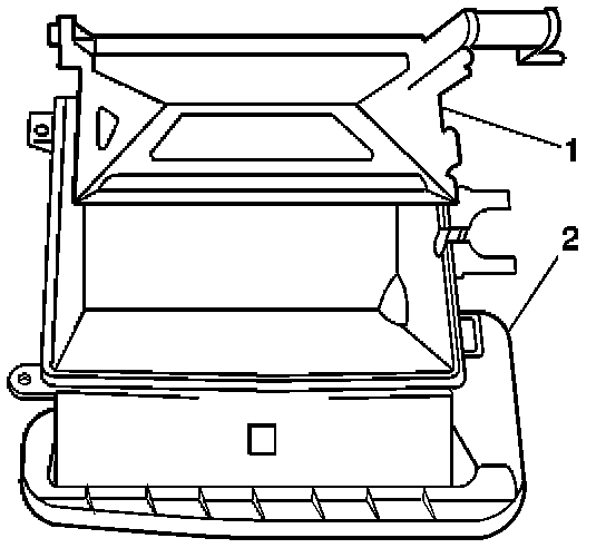 2. Align the retaining tabs and install the recirculation housing (2) to the HVAC module assembly.