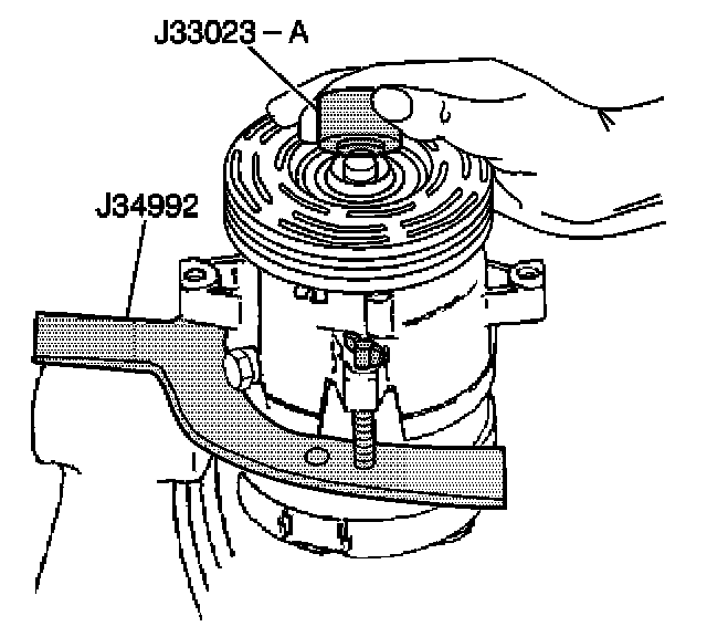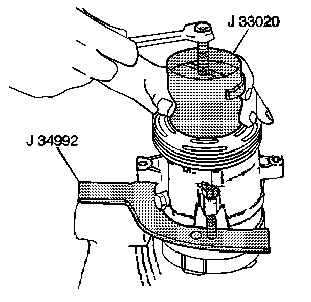 6. Hold the J 33020 in place. Tighten the puller screw against the puller guide in order to remove the puller rotor and bearing assembly.