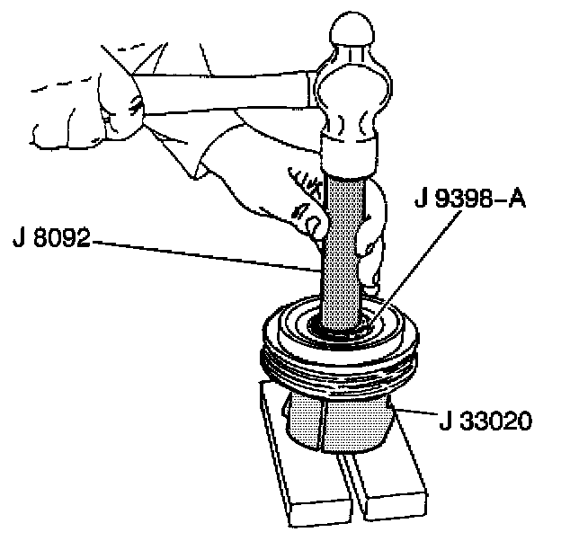 8. Use a J 9398 with the J 8092 in order to drive the bearing out of the rotor hub.