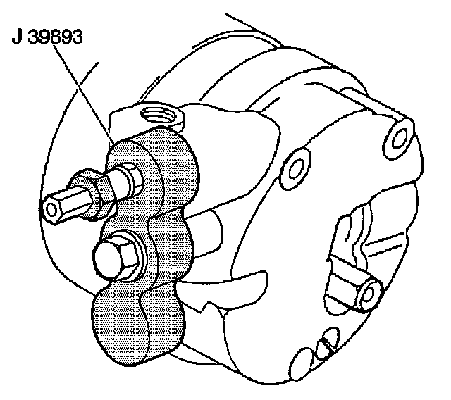 1. With the sealing washers in place, install the J 39893 on the rear head of the compressor.