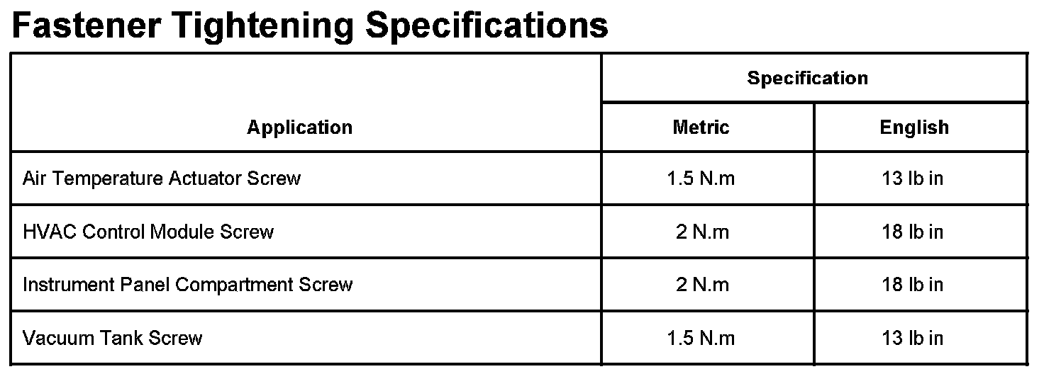 Fastener Tightening Specifications: