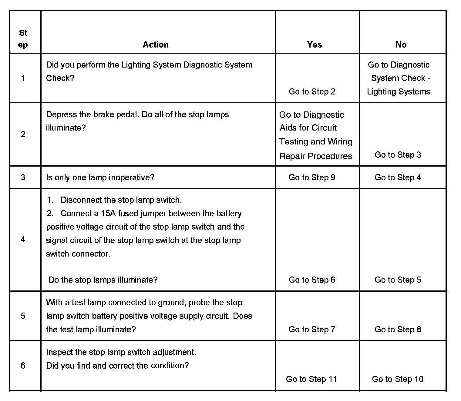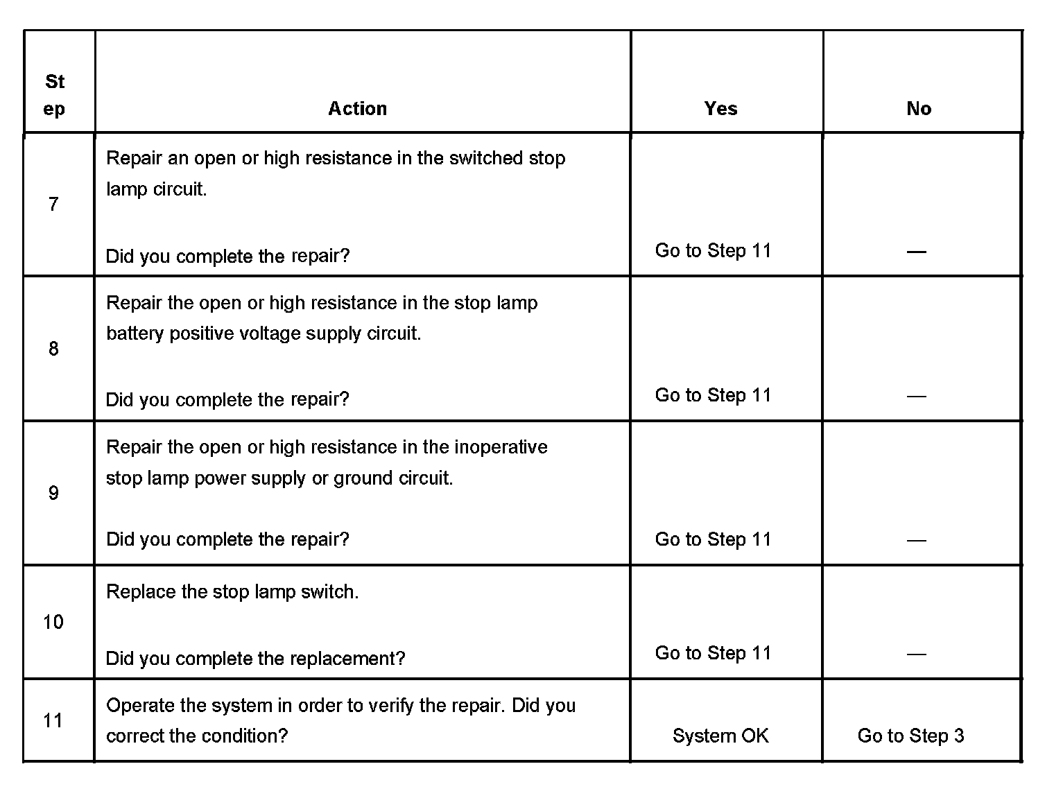 Stop Lamps Inoperative