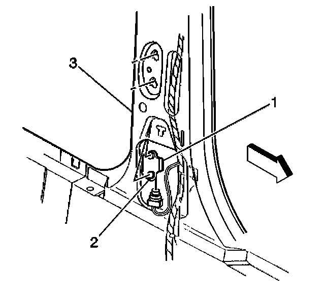 12. Remove the side impact sensor (SIS)-LF from the center pillar (3).