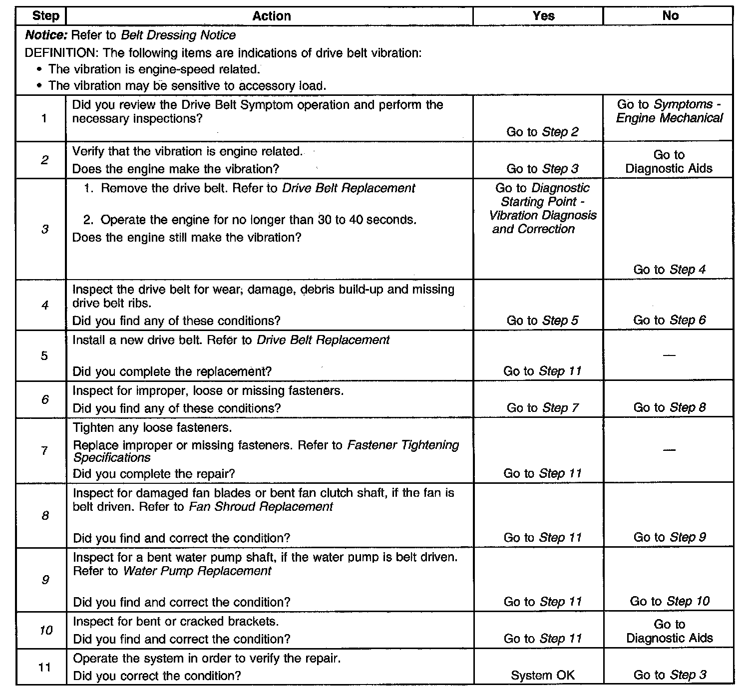 Drive Belt Vibration DiagnosisSteps 1-11: