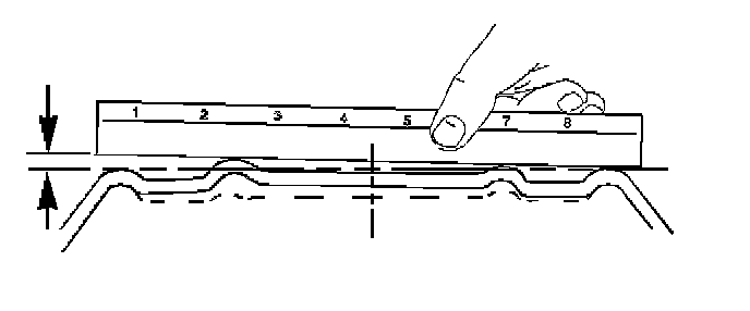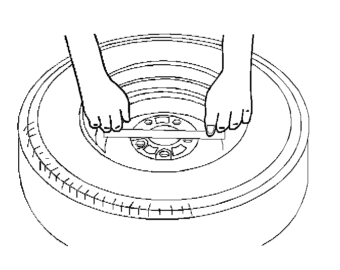 1. Use a straight edge 203-229 mm (8-9 in) long. Place the straight edge on the wheel inboard mounting surface. Try to rock the straightedge up and down within the mounting surface.