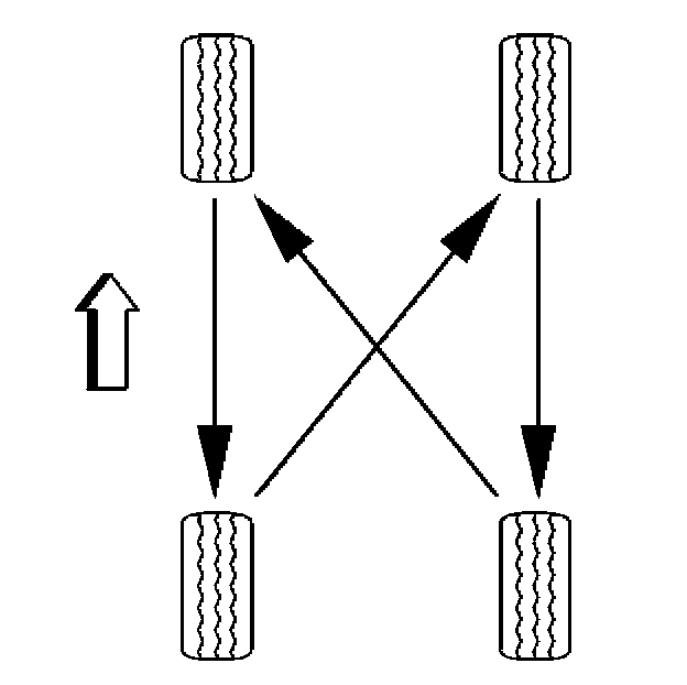 Always use a 4-wheel rotation. After rotation, check the wheel nuts for specified torque. Then, set the tire pressure.