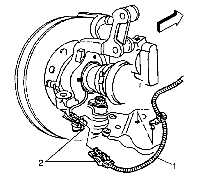 7. Connect the wheel speed sensor electrical connector (2), if equipped.