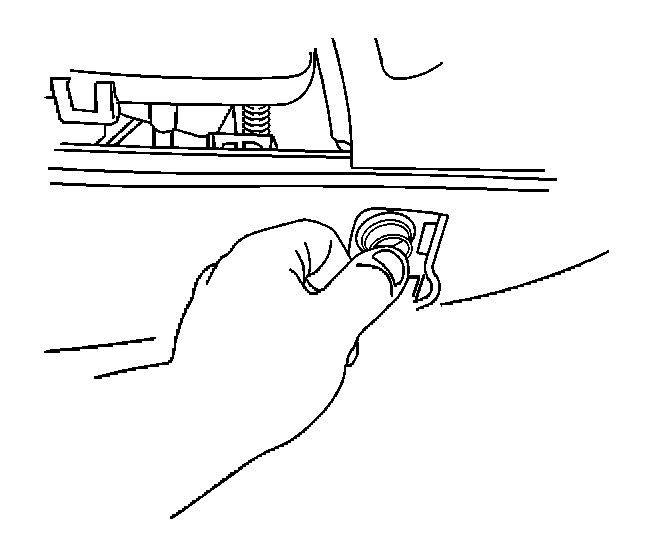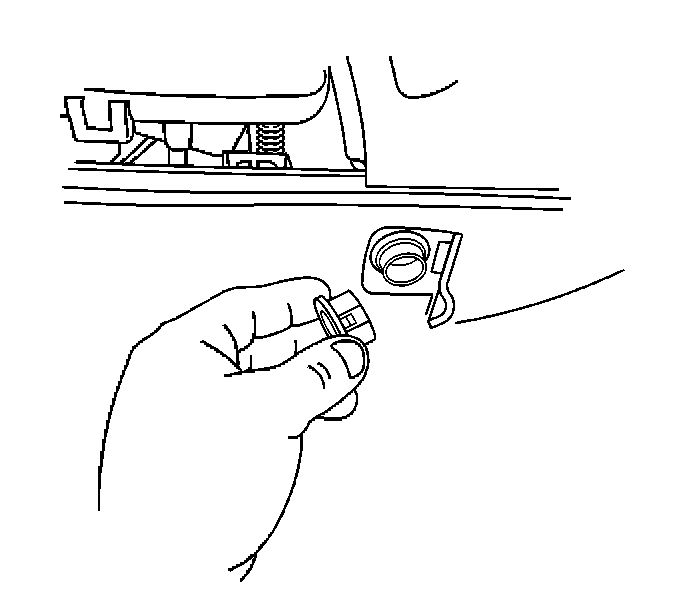 2. Remove the accessory power receptacle by placing one side of the "T" portion of J 42059 into the receptacle opening. Angle the other side into the opposite opening. Pull the accessory power receptacle straight out.
