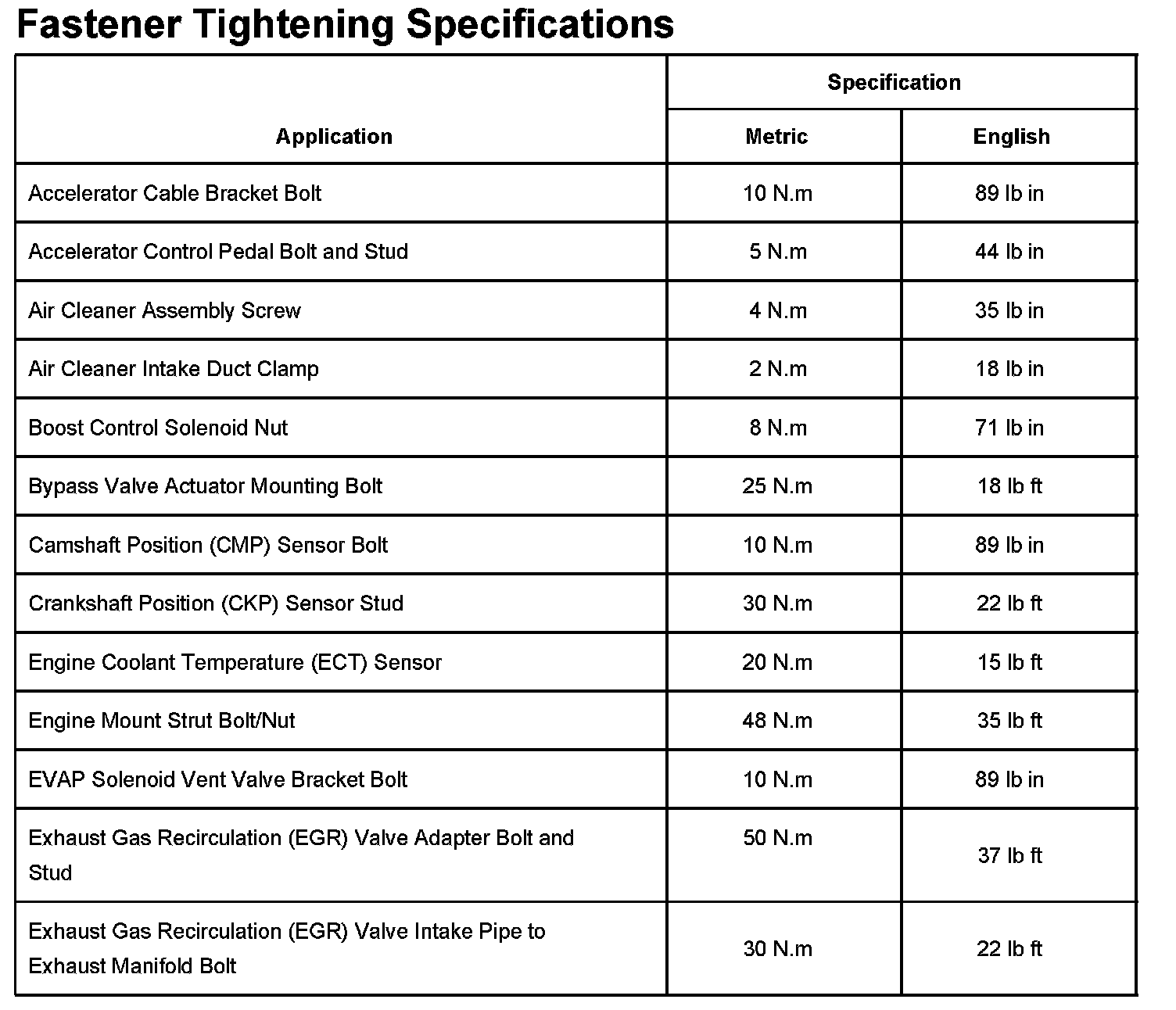 Fastener Tightening Specifications Part 1: