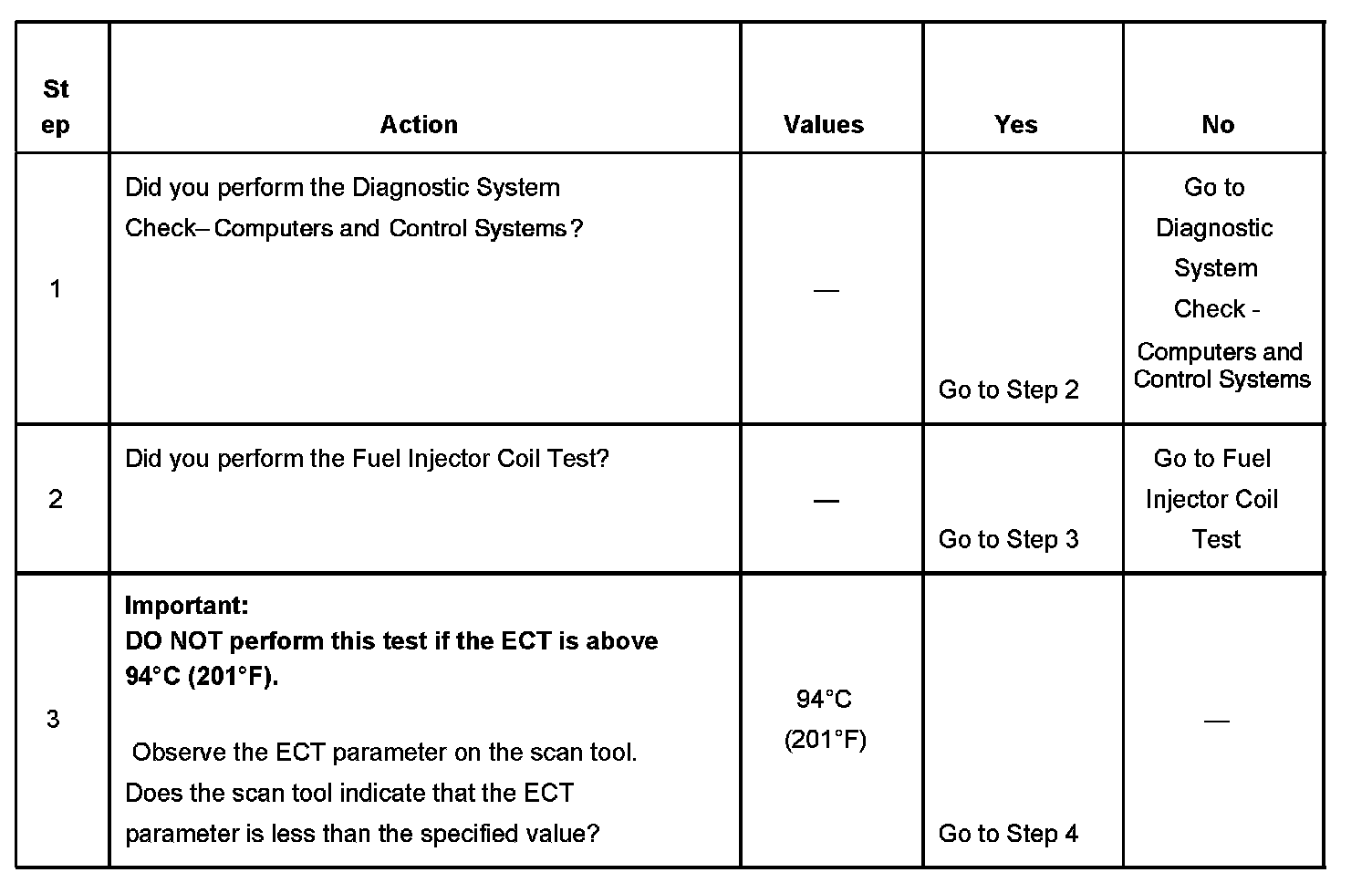 3. The engine coolant temperature (ECT) must be below the operating temperature in order to avoid irregular fuel pressure readings due to hot soak fuel boiling.