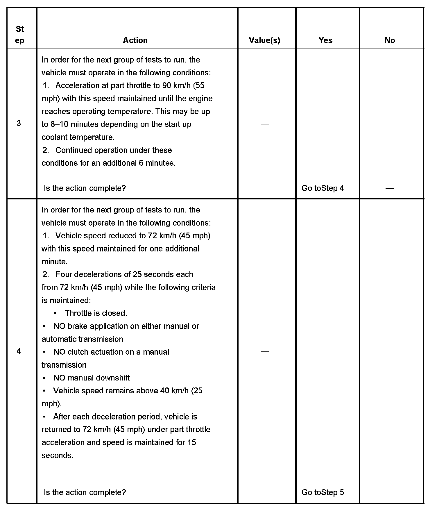 5. This step is to run the Catalyst Tests. This test runs during the idle period immediately following a cruise period that meets a minimum calibrated RPM and time period.
