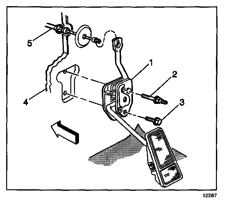 3. Remove the accelerator cable (5) from the accelerator pedal (1).