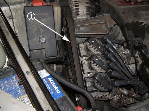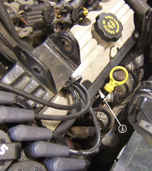4. If present, remove any plastic (polypropylene) conduit (1) from the spark plug wires at the front of the engine (should only be found on spark plug wires 1 and 5).