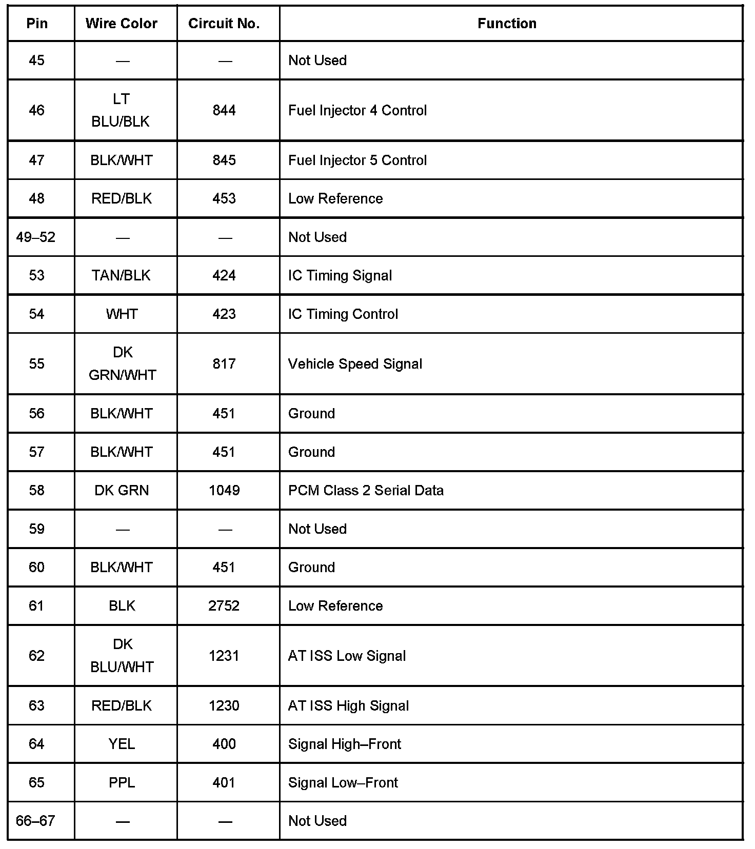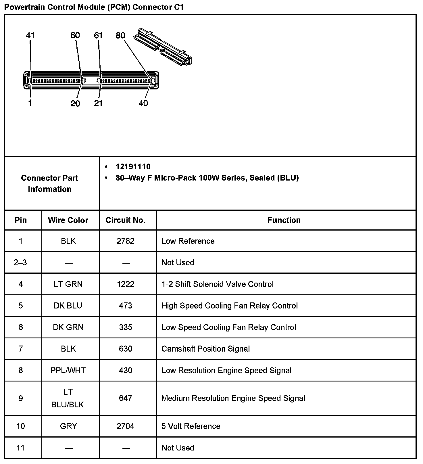 Powertrain Control Module (PCM) Connector C1 Part 2: