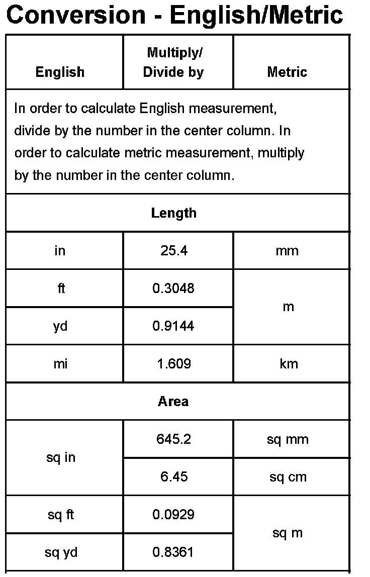 Conversion - English/Metric