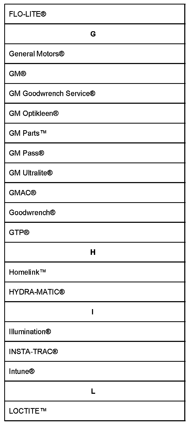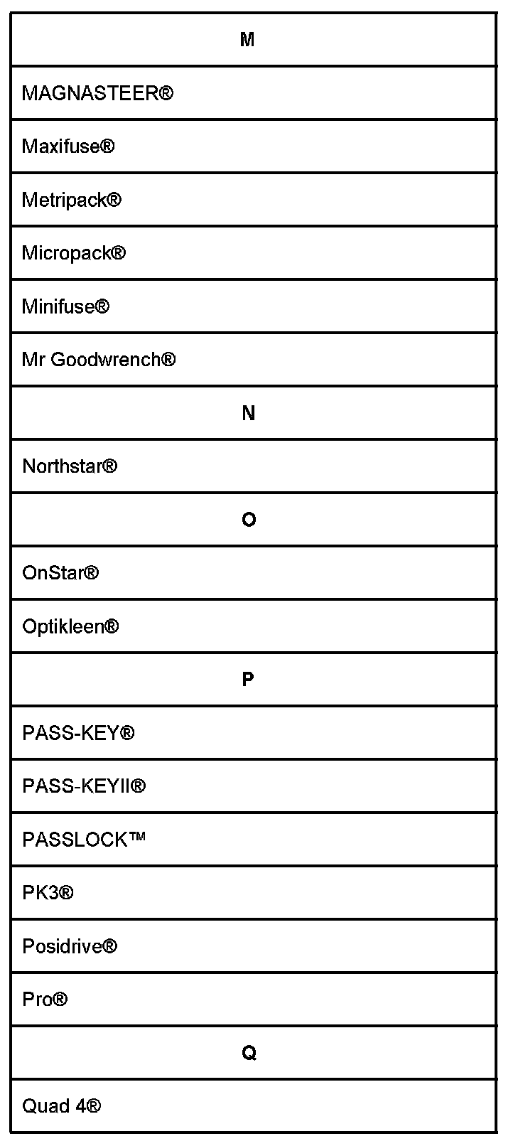 Listed are the Registered Trademarks ((R)) or Non-Registered Trademarks ((TM)).