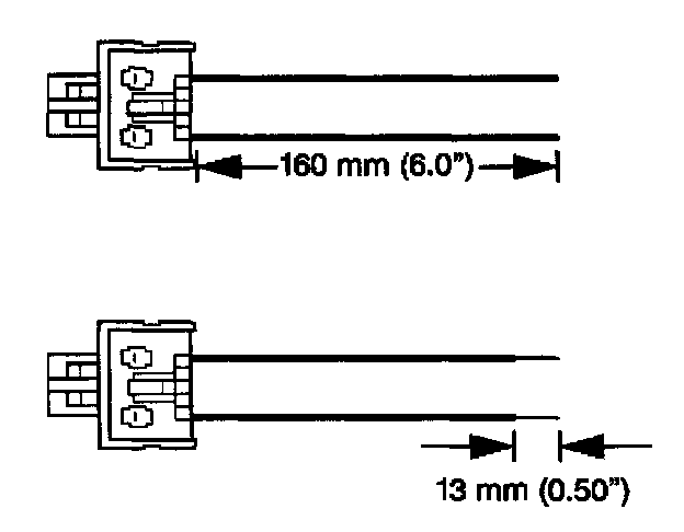 7. Strip 13 mm (0.5 in) of insulation from each of the connector wire leads.