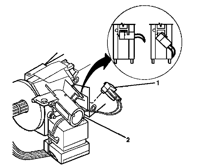 12. Install the key alarm connector (1) onto the ignition lock cylinder case assembly (2) by doing the following: