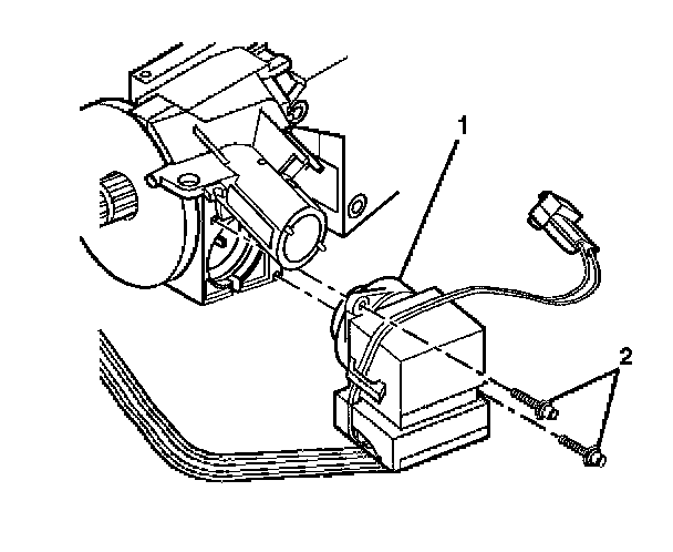 9. Remove the 2 tapping screws (2) from the ignition switch (1).Let the switch assembly (1) hang freely.