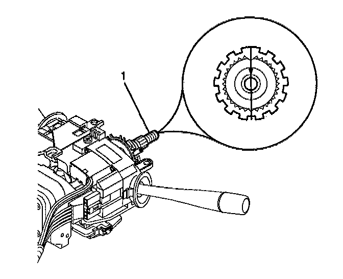- The block tooth (1) of the steering shaft assembly is in the 12 o'clock position.