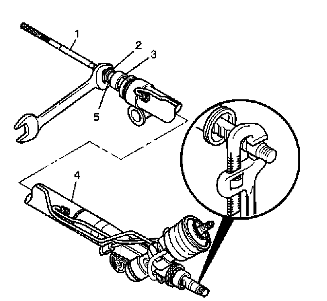 5. Place a pipe wrench on the rack (5) next to the inner tie rod housing (4).