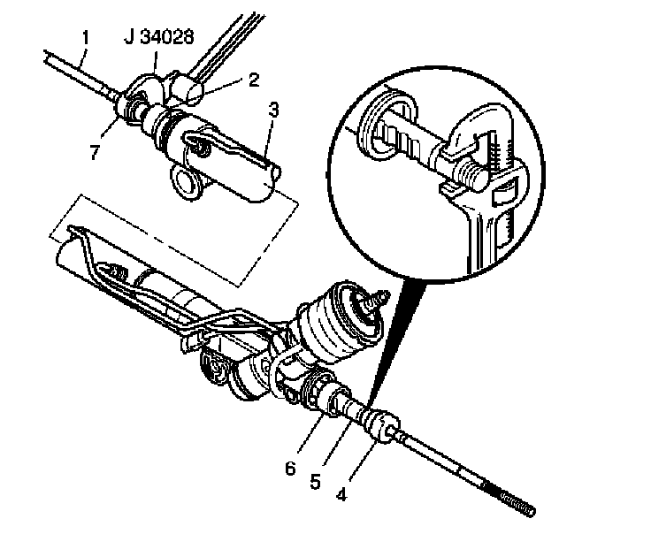 10. Place a torque wrench and J 34028 on the flats of the inner tie rod housing (7).