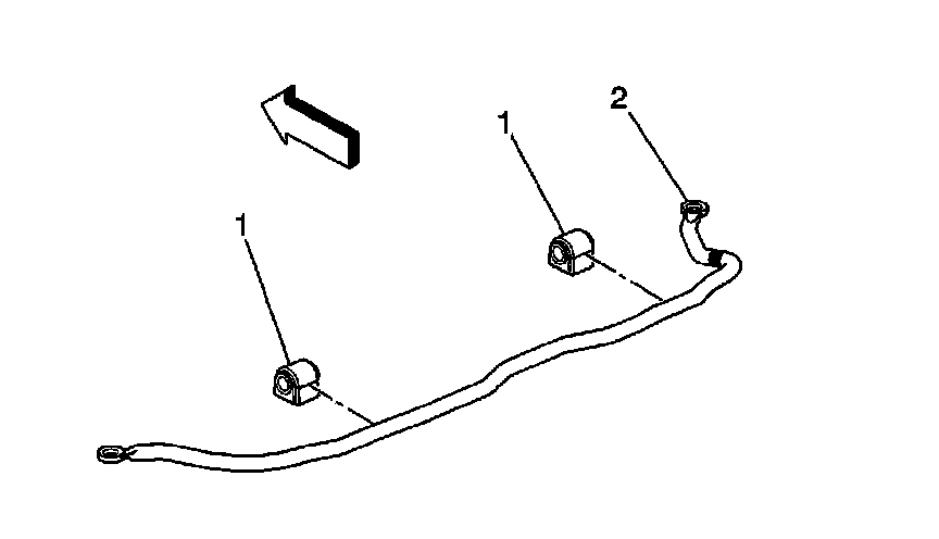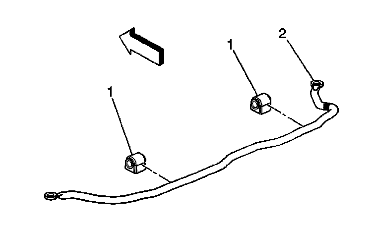 4. Remove the left and right side stabilizer shaft insulators (1) from the stabilizer shaft (2).