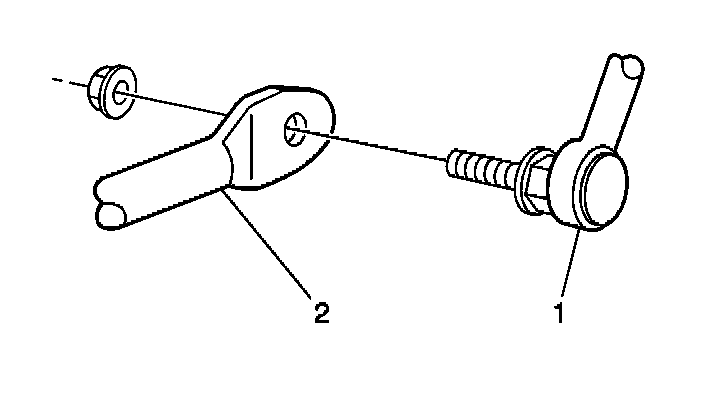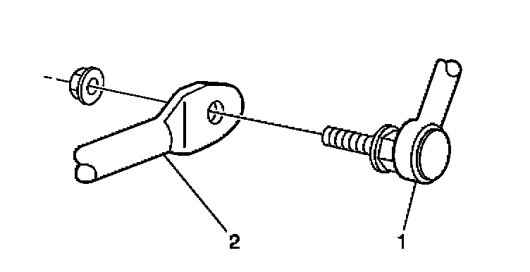 2. Remove the stabilizer shaft link nut from the stabilizer shaft link (1) and the stabilizer shaft (2).