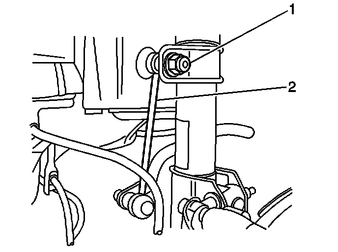 3. Remove the stabilizer shaft link nut from the stabilizer shaft link (1) and the strut.