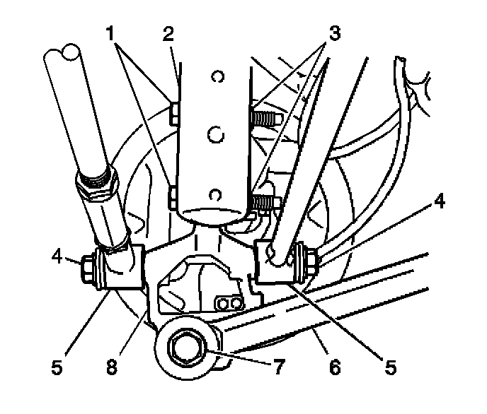 2. Remove the bolt and nut from the trailing arm (6) and the knuckle (8).