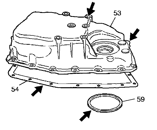 4. Install the case side cover gasket (54) and case side cover (53) onto the case. Make sure the gaskets and electrical connector are positioned correctly.