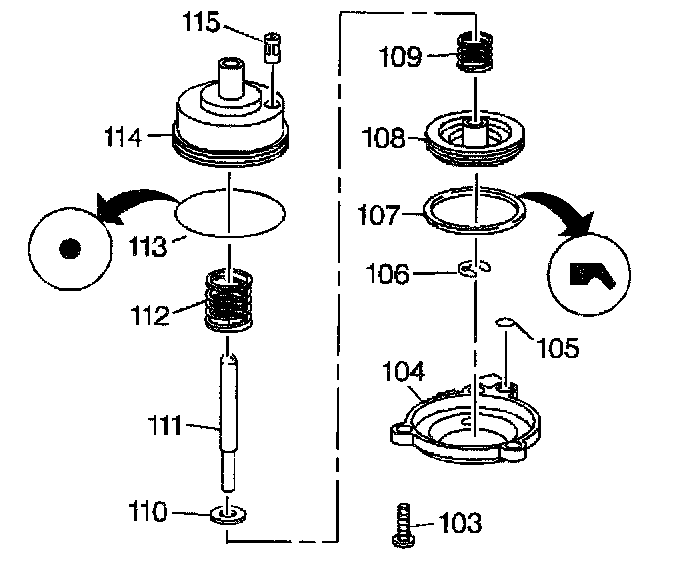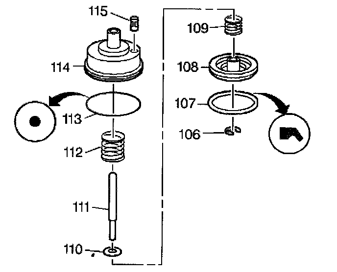 7. Install the servo piston and spring assembly (106-112) into the servo piston cylinder assembly (113-115) and set the assemblies aside.