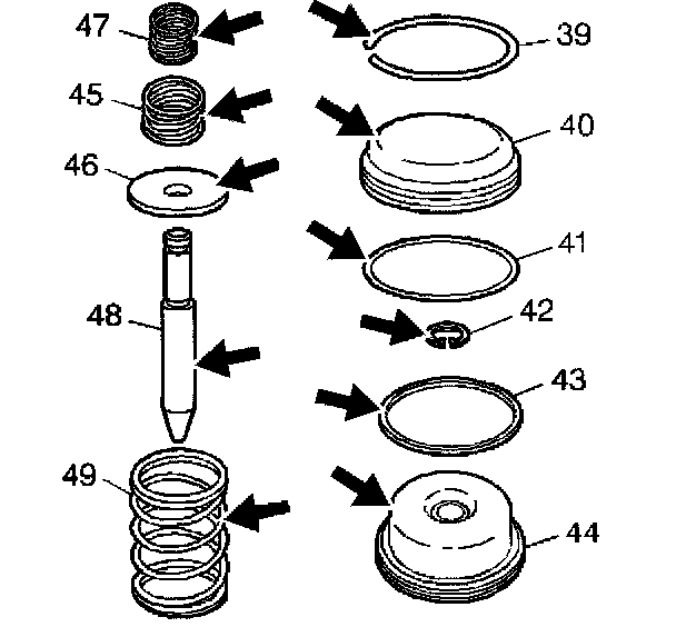 ^ Broken or collapsed servo piston cushion springs (45, 47)