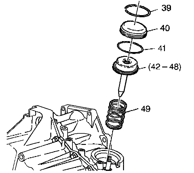 2. Assemble the servo piston (44), the servo piston cushion springs (45, 47), the servo piston cushion spring retainer (46) and the servo piston apply pin (48).