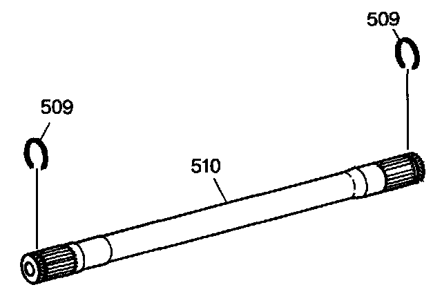 2. Affix the outboard drive shaft retaining ring (509) and the inboard drive shaft retaining ring (509) onto the output shaft (510).