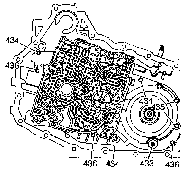 1. Remove the indicated case cover bolts (433-436).