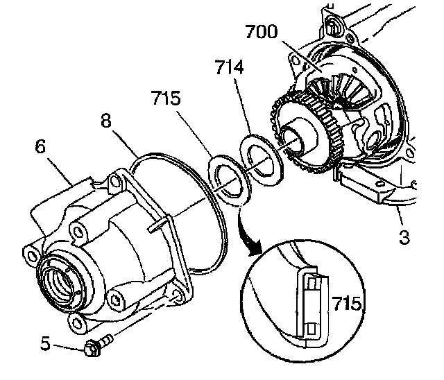 3. Remove the differential carrier thrust washer (715).