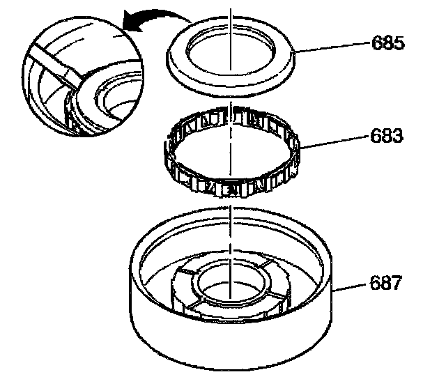 1-2 Support Roller Clutch Disassemble1. Use a small screwdriver in order to gently pry the thrust bearing (685) off of the 1-2 support drum (687).