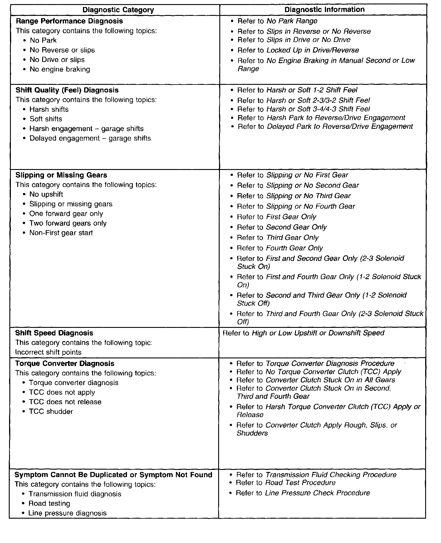- Symptoms - Automatic Transmission