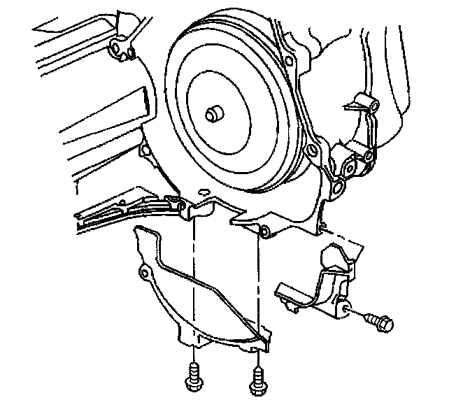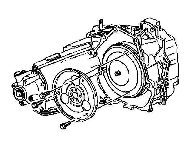 1. Install the J 37096 in order to gain access to the torque converter bolts and to prevent the flywheel from turning.